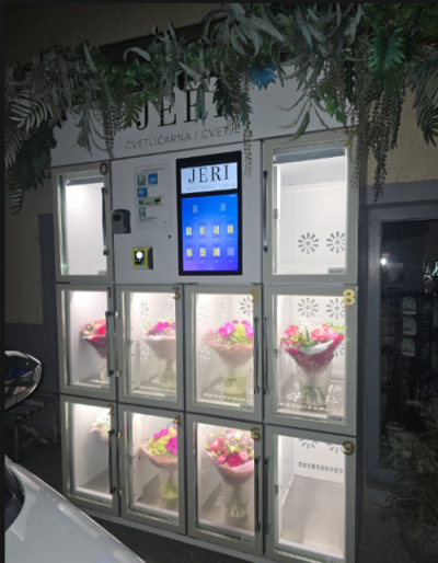 Another floral vending machine in Slovenia operating days and nights even after the shop has closed: